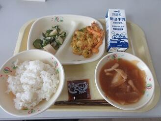 今日の給食は、ご飯、牛乳、鶏から揚げのレモンソース和え、おひたし、豆腐とわかめの味噌汁です。高根沢町で生産されたものは、豆腐、味噌、ねぎ、米です。今日もたいへんおいしく頂きました。
