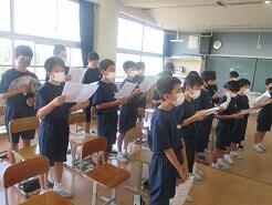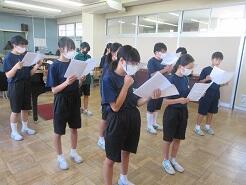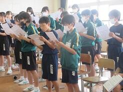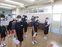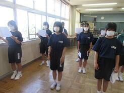 今日の朝、学年朝会を実施しました。どの学年も、計画・運営は生徒たちです。