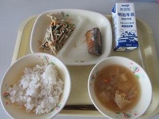 今日の給食は、麦ご飯、牛乳、さんまみぞれ煮、ごぼうサラダ、干ぴょう入りかき卵汁です。高根沢町で生産されたものは、豆腐、ねぎ、米です。今日もたいへんおいしく頂きました。