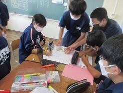 単語の並び順の学習で、グループで英文パズルに取り組んでいました。