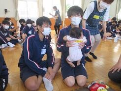 自分も赤ちゃんの時に、赤ちゃんふれ合いに参加したことがあるという生徒がいてびっくりしました。