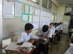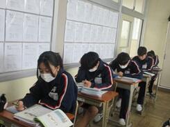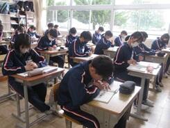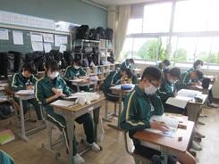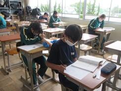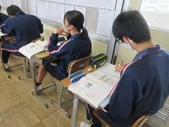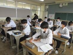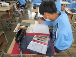 3年生は、1~5校時を使って、今年度1回目の学習確認テストに挑戦していいます。1年間で7回挑戦し、その間に、志望校を決定していきます。みんな真剣な表情で取り組んでいました。がんばれ、3年生。