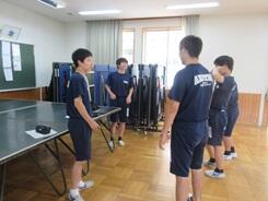 総体の応援で、卓球の会場に行きました。男子の団体戦の試合を見ていると、気合い十分で、シングルスの試合をしてる、3年生男子生徒が目に留まりました。修学旅行で見たその生徒とは、まるで別人のように見え、とても頼もしく感じうれしくなりました。生徒には、いろいろな顔がありますが、最高の顔が見られました。(この生徒は、ダブルスで県大会出場を決めました。)