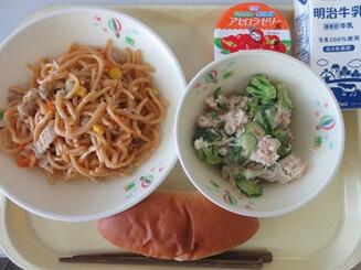 今日の給食は、セルフフィッシュバーガー、(丸型牛乳パン、白身魚フライ、コールスローサラダ)、牛乳、マカロニカレースープです。高根沢町で生産されたものは、にんじん、キャベツ、玉ねぎ、きゅうりです。今日もたいへんおいしく頂きました。