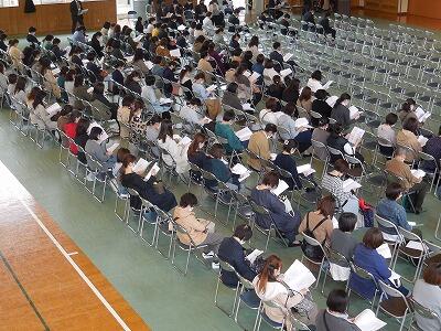 【PTA総会】体育館にて総会が行われ、配付した資料内容すべてが承認されました。