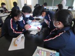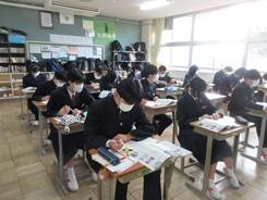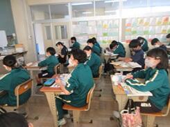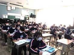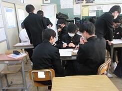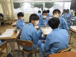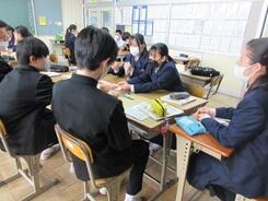 今日の3、4時間目に、2年2、3組の家庭科の時間に、栄養教諭さんに来ていただき、郷土食や伝統食について学習しました。願書出願に行っていたので見られませんでしたが、教科担任とのTTでとてもよい授業だったようです。明日は1、4、5組で実施するので、見に行きたいと思います。