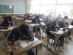 今日の4時間目に、3年生が合唱プレ大会を実施していたので見てきました。いくつかのクラスの合唱を聴いてきましたが、もっともっと声が出るような気がしました。本番を楽しみにしています。