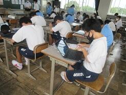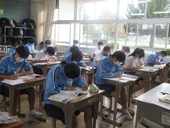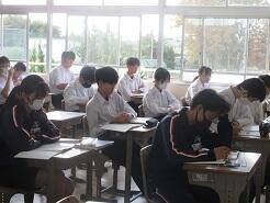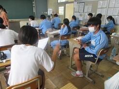 読んだ投稿文から、感想や自分の意見を書く授業が進められていました。