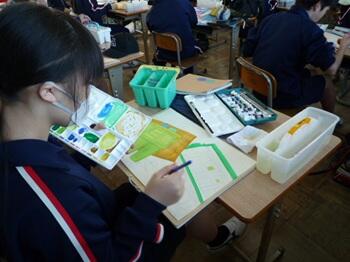 〇 3組 美術 水彩静物画の彩色技法