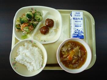 ごはん 肉団子 棒棒鶏サラダ さつま芋汁