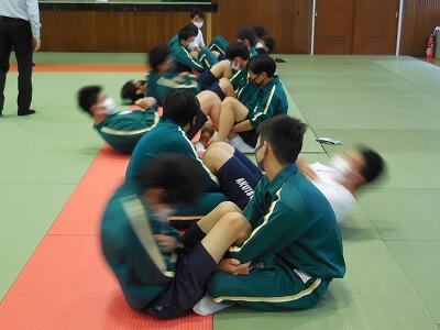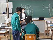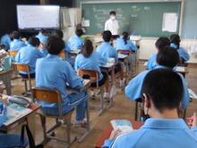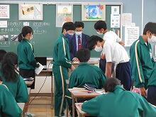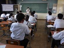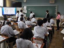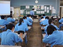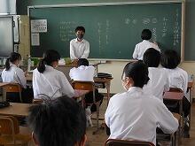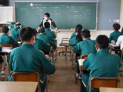今日の様子(6/27) 投稿日時 : 2022/06/27 HP担当者 まだ6月というのに、猛暑日(35℃)が続いています。もう梅雨が明けたのでしょうか。朝から教室は空調設備で対応していますが、体育館や特別教室などは空調設備がないので熱中症対策を講じて進めています。【授業の様子】1年1組「数学」 1年2組「英語」 1年3組「国語」 1年4組「美術」 1年5組「音楽」 2年1組「技術」 2年2組「家庭」 2年3組「国語」 2年4組「英語」 2年5組「社会」 2年6組「理科」 3年1組「社会」 3年2組「理科」 3年3組「英語」 3年4組「英語」 3年5・6組「数学」 3年5・6組「数学」 3年5・6組「数学」 8・9組「保健体育」【新規採用教員の学校訪問】今年度採用された教員のために、県教委・町教委の指導主事の先生方からたくさんの御指導をいただき、今後の指導に活かしてほしいです。授業のねらいを説明ゆりかごのように 跳び前転 授業の振り返り 【給食メニュー】黒蜜パン、牛乳、ソフトチーズ、トマトオムレツ、野菜とウィンナーのスープ、カットゼリー(ぶどう)です。暑い中での冷たいカットゼリーが口の中を爽やかにしてくれました。今日も美味しくいただきました。ごちそうさまでした。