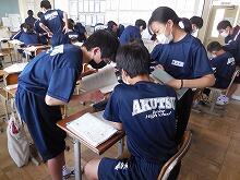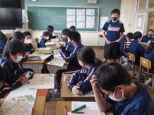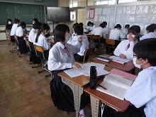 今日の様子(7/19) 投稿日時 : 2022/07/19 HP担当者 地区総体大会がすべて終了しました。団体種目・個人種目で「県総体大会」出場権を得た生徒は7月22日(金)(バスケットボール)から7月末までの大会に向けて最後の調整を図ってほしいです。引退した3年生は「進路実現」に向けて目標を持って学習に取り組んでください。また、部活動では2年生が中心となって新チームを結成し、「地区新人大会」に向けて取り組みましょう。 さて、明日は技能教科の「期末テスト」が行われますのでしっかり学習してください。【授業の様子】1年1組「国語」 1年2組「社会」 1年3組「音楽」 1年4組「理科」 1年5組「数学」 2年1組「国語」 2年2組「国語」 2年3組「英語」 2年4組「社会」 2年5組「理科」 2年6組「英語」 3年1組「理科」 3年2組「英語」 3年3・4組「数学」 3年3・4組「数学」 3年3・4組「数学」 3年5組「社会」 3年6組「社会」 8組「国語」 9組「数学」 【給食メニュー】ご飯(検食用)、牛乳、あじフライ、フルーツポンチ、卵と豆腐のスープです。鯵(あじ)は夏になると特に美味しくなる魚なので「あじ」と名がついたそうです。今日も美味しくいただきました。ごちそうさまでした。