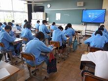 今日の様子(6/23)職業人に聞く 投稿日時 : 2022/06/23 HP担当者 朝から過ごしやすい日となりました。今日から熱中症防止対策として体操着での登校としましたので爽やかな状態で過ごしてほしいです。 さて、今日は午後から「職業人に聞く」を開催いたします。キャリア教育の一環として様々な職業で働いている方(23講座)を講師に働くことの目的や楽しさ、辛さなどを確認しながら、将来へ向けて働く意義を学びます。【授業の様子】1年1組「社会」 1年2組「国語」 1年3組「英語」 1年4組「社会」 1年5組「理科」 2年1組「英語」 2年2組「英語」 2年3組「理科」 2年4組「国語」 2年5組「音楽」 2年6組「社会」 3年1・2・3組「保健体育」 3年1・2・3組「保健体育」3年4組「理科」 3年5・6組「数学」 3年5・6組「数学」 3年5・6組「数学」 8組「国語」 9組「数学」 【給食メニュー】かき揚げ丼、牛乳、干ぴょうのごま酢和え、大根と油揚げの味噌汁です。かき揚げにタレをかけると、タレがご飯まで染み込み、さらに食が進みました。今日も美味しくいただきました。ごちそうさまでした。