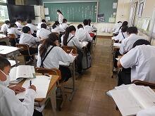今日の様子(7/22) 投稿日時 : 2022/07/22 HP担当者 夏休みになり2日目の朝を迎えました。生徒の皆さん、健康に過ごしているでしょうか。現在、新型コロナウィルス感染者数が毎日、過去最高を更新しています。日頃から感染予防に心がけてください。 さて、今日から「県総体大会」(バスケットボール)が開催されます。また、3年生を中心とした3者面談も実施されています。お忙しいとは思いますがお子様のために御協力をお願いいたします。【三者面談の様子】【ALTのお別れ会】4年間本校で英語の授業で支援していただいたALTが7月20日をもって退職することになりました。日本語が上手で、様々な行事にも参加してくれました。今後はマレーシアで英語教師として働くそうです。ますますの御活躍を御祈念いたします。涙ぐみながらのスピーチでした