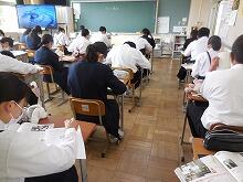 今日の様子(5/6) 投稿日時 : 2022/05/06 HP担当者 爽やかな五月晴れの朝を迎えました。暦の上では「立夏」が過ぎ、春が極まり野山に夏の気配が立つ頃といわれています。通勤途中の風景も「田植え」が終了している田を多く見かけます。 さて、連休はどのように過ごされていたでしょうか。全国各地で水難事故や交通事故などが発生していましたが、本校生徒には大きな事故やコロナ感染等もなく、保護者の皆様の御協力の賜と感謝申し上げます。【授業の様子】1年1組「社会」 1年2組「音楽」 1年3組「国語」 1年4組「社会」 1年5組「国語」 2年1組「英語」 2年2組「社会」 2年3組「理科」 2年4組「美術」 2年5・6組「数学」 2年5・6組「数学」 2年5・6組「数学」 3年1組「社会」 3年2組「英語」 3年3組「社会」 3年4組「理科」 3年5組「英語」 3年6「国語」 8・9組「技術」【給食メニュー】たけのこ入り五目ご飯、牛乳、いわしの梅醤油煮、干ぴょう入りかき卵汁で、今日のメニューは「こどもの日メニュー」です。いわしは海の中で敵から身を守るため群れを作って生活しているそうです。たけのこもすくすく育つという意味もあり、工夫されたメニューでした。ごちそうさまでした。