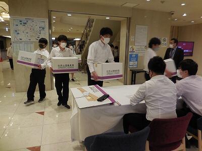 修学旅行記 10 朝食(最終日) 投稿日時 : 2022/04/24 HP担当者 6:00起床、荷物をまとめて運送トラックに詰め込みました。26日(火)には配送予定だそうです。 7:00に朝食を食べ、8:20北野天満宮で記念写真を撮り、合格祈願をしてきます。その後は二条城・三十三間堂へクラス希望で見学します。天気は「曇り一時雨」の予報です。ちょっと心配ですが生徒はみんな元気です。どんよりとした曇り空です荷物のチェックです。トラックへ詰め込みます。 朝食は洋風でした静かに食べるのを待っていますやや寝不足のせいか、まだ眠そうです。配膳も担当生徒が行います(コロナ対策)