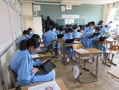 昨日の午前中の続きで、修学旅行に向けて調べ学習を実施していました。
