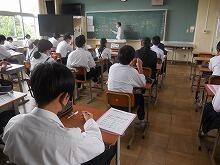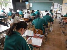 【学習確認テストの様子】1時間目「国語」3年生は夏休み明け頃から学習成績が一段と向上してきます。夏休みの高校1日体験などを通して、進路への意欲が増し家庭学習の時間も増えてきます。これからが楽しみですね。