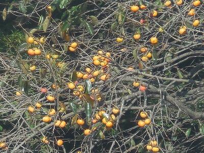 【学校の風景】第2グランドに行くところに柿が実っています。残念ながら渋柿です。
