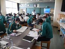 昨日の残暑と一転、朝から肌寒さを感じ、校内でも長袖の体操着を着ている生徒が目立ちました。今日は午後から2年生が10月12日から行われる「マイチャレンジ事業」の事前職場訪問があり、緊張して学校生活を送っています。