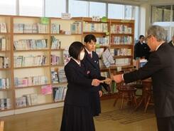 地域の方から、「改善センターの南西の橋で、中学生が自転車で来たので、橋ですれ違うのを待っていたら、頭を下げて通り過ぎました。男子で、YONEXのウインドブレーカー(黒、白、茶)を着ていました。立派な生徒さんです。」という連絡が入りました。本校生徒が地域の方から褒められるのは、最高にうれしいことです。