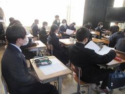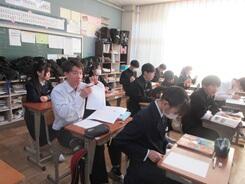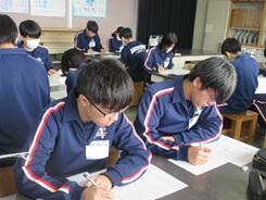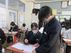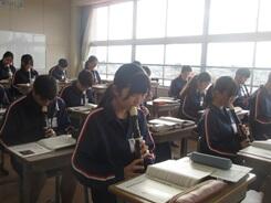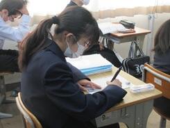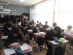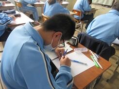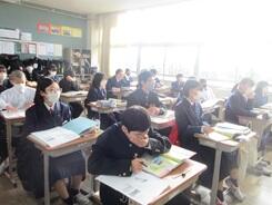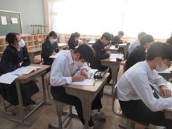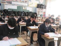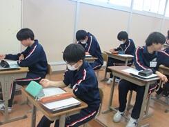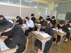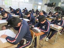 今日の朝、3年生の教室を見て歩くと、どの教室も登校している生徒は静かに勉強に打ち込んでいました。1、2年生の教室とは、明らかに雰囲気の違いを感じました。3年生は、完全に受験(受検)モードになってきました。そんな雰囲気を感じ、校長としてちょっと嬉しくなりました。私立高校、県立高校特色選抜、県立高校一般入試・・・と続いていきますが、最後まで頑張れ3年生。