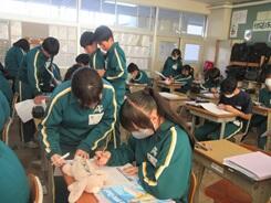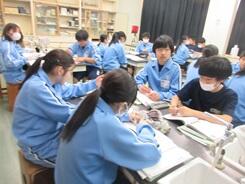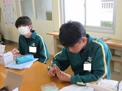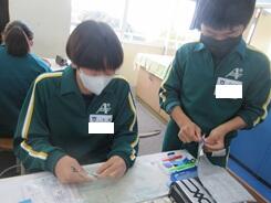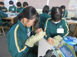 ブックカバーづくりに取り組んでいました。完成した生徒もいました。