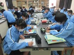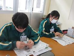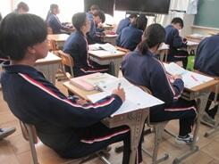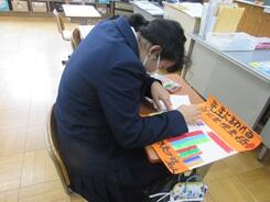 ブックカバーづくりに取り組んでいました。仕上がった生徒もいました。