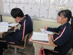 学習確認テストに向けて、積み上げプリントに取り組んでいました。