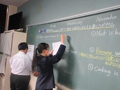 接続詞becauseを使って、理由や原因を表す文を書く授業が進められていました。