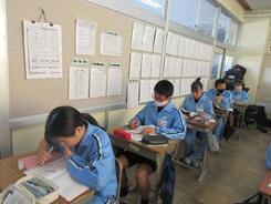 今日は、全学年学習確認テストです。どのクラスも、真剣に取り組んでいました。