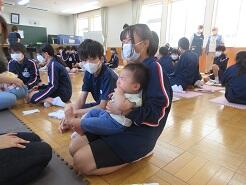 自分も赤ちゃんの時に、赤ちゃんふれ合いに参加したことがあるという生徒がいてびっくりしました。