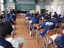 今日の様子(5/6) 投稿日時 : 2022/05/06 HP担当者 爽やかな五月晴れの朝を迎えました。暦の上では「立夏」が過ぎ、春が極まり野山に夏の気配が立つ頃といわれています。通勤途中の風景も「田植え」が終了している田を多く見かけます。 さて、連休はどのように過ごされていたでしょうか。全国各地で水難事故や交通事故などが発生していましたが、本校生徒には大きな事故やコロナ感染等もなく、保護者の皆様の御協力の賜と感謝申し上げます。【授業の様子】1年1組「社会」 1年2組「音楽」 1年3組「国語」 1年4組「社会」 1年5組「国語」 2年1組「英語」 2年2組「社会」 2年3組「理科」 2年4組「美術」 2年5・6組「数学」 2年5・6組「数学」 2年5・6組「数学」 3年1組「社会」 3年2組「英語」 3年3組「社会」 3年4組「理科」 3年5組「英語」 3年6「国語」 8・9組「技術」【給食メニュー】たけのこ入り五目ご飯、牛乳、いわしの梅醤油煮、干ぴょう入りかき卵汁で、今日のメニューは「こどもの日メニュー」です。いわしは海の中で敵から身を守るため群れを作って生活しているそうです。たけのこもすくすく育つという意味もあり、工夫されたメニューでした。ごちそうさまでした。