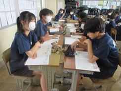 読みの資料「書道パフォーマンスの挑戦」を使って、伝統文化を継承・発展させていくことについて考えていました。