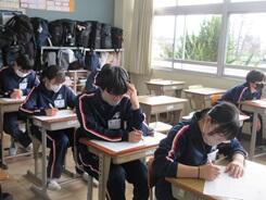 確率の単元テストや、四分位数を求める授業が進められていました。