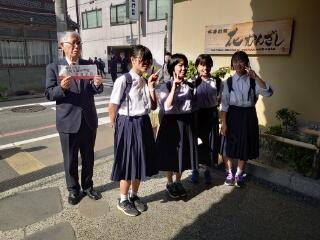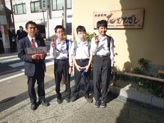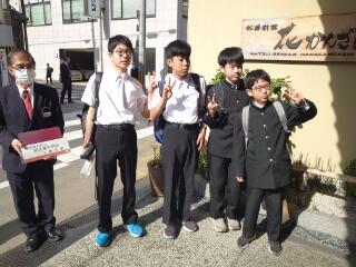 修学旅行2日目、今日もいい天気です。生徒たちは元気に朝ご飯を食べて、班別研修に出かけました。