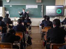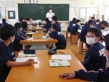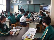 今日の様子(4/13) 投稿日時 : 2022/04/13 HP担当者 毎日暑い日が続いていますが、今夜から明日にかけて雨の予報で気温も下がるようです。体調管理に気をつけたいですね。 さて、昨日、緊急メールにてお願いいたしましたが、県内各地で未だに新型コロナウイルス感染症に疾患している人が多くいます。人混みを避けるとともにマスク着用、黙食、喚起等、様々な対応を行い、学校生活が通常に行えるよう保護者の皆様にも御理解・御協力をお願いいたします。【授業の様子】1年1組「技術」 1年2組「家庭」 1年3組「数学」 1年4組「理科」 1年5組「数学」 2年1組「音楽」 2年2組「社会」 2年3組「国語」 2年4・5・6組「保健体育」 3年1組「社会」 3年2組「理科」 3年3組「理科」 3年4組「英語」 3年5組「国語」 3年6組「美術」 【給食メニュー】チキンカレーライス、コーンサラダ、牛乳です。生徒にとって好物の一つ「カレーライス」です。じっくりと煮込まれたカレーにはじゃが芋や人参などの野菜が多く含まれとても美味しかったです。今日はサラダをトッピングしてみました。とても美味しかったです。ごちそうさまでした。【給食時の様子】服装を整え、配膳します今日はリモートで「部活動紹介」があり、真剣に見ていました。もちろん黙食です。