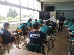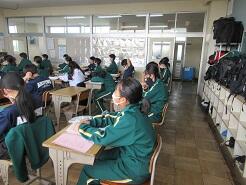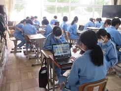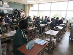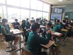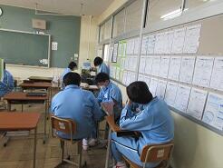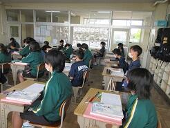 数学に取り組んでいるクラス、教科書を配布しているクラス、修学旅行の調べ学習に取り組んでいるクラスがありました。