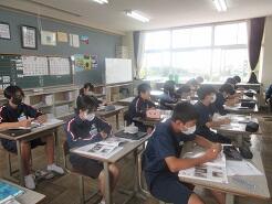 2人組で、自分の好きな学校の場所を紹介する活動を行っていました。