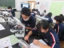 ホウセンカの茎の断面を観察し、水や養分を通す道管と師管を確認していました。