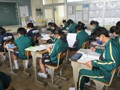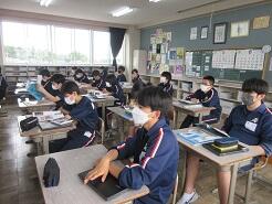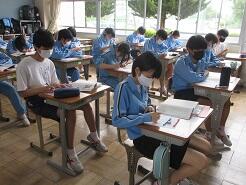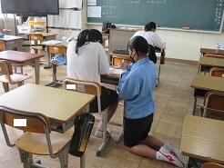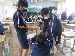 授業の導入で、腹式呼吸で発声練習をしていました。この後アルトリコーダーで「喜びの歌」と「かっこう」を演奏します。