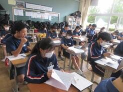 「恩返しの井戸を掘る」の教材文で、全文を読んで自分の考えをまとめる授業が進められていました。
