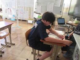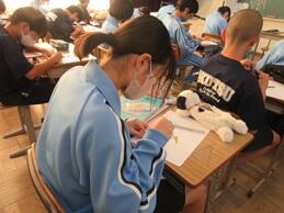 タブレットを使って、クイズ形式で光の反射の復習を行っていました。