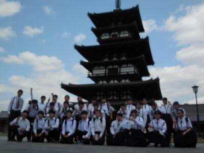 修学旅行記 3 薬師寺 投稿日時 : 2022/04/22 HP担当者 最初の見学場所「薬師寺」に到着しました。近畿地方は昨日雨だったそうで、今日はやや湿度が高いとのことでした。しかし、修学旅行シーズン前のせいかスムーズに見学することが出来ました。駐車場も空いています 1300年前に建立された「薬師寺」には国宝がたくさんありました。お坊さんのありがたい「法話」をいただきました。 東塔の前で記念写真