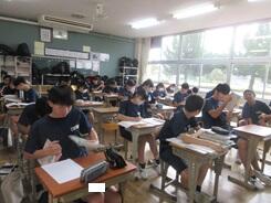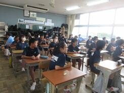 今日のの1時間目は、学級活動で、夏休みの課題提出や夏休みのふりかえり、それにグループエンカウンターなどを行っていました。みんな元気に登校してきています。