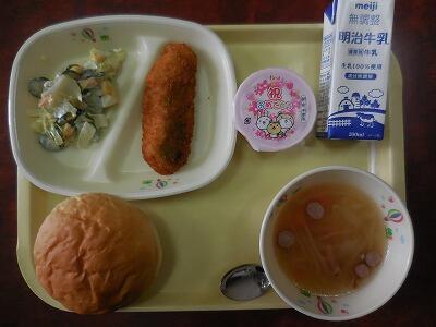今日の様子(4/11)身体計測 投稿日時 : 2022/04/11 HP担当者 校庭の桜も少しずつ散り始めました。その代わり花壇の草花が一段と色鮮やかになってきました。今日は全学年身体計測(身長・体重・視力・聴力)があります。この3年間で大きく成長し、中には入学当時より20cm以上も身長が伸びている生徒もいます。この時期、心も身体も大きく成長しますので、常に見届けていたいですね。【校庭の桜吹雪】【身体計測の様子(3年生)】身長測定 体重測定 視力検査 1年生は体操着が変わりました【授業の様子】8組「学級活動」 9組「学級活動」 【給食メニュー】セルフフィッシュバーガー、牛乳、野菜とウインナーのスープ、お祝いゼリーです。今日は入学・進級を祝ってのメニューでした。高根沢町立学校給食センターでは毎日約2400人分の給食を学校に届けてくれます。いつも感謝して食べましょう。ごちそうさまでした。 お祝いゼリーはいちご味でした