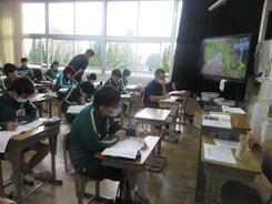 読み物資料「ハッチを開けて知らない世界へ」を使って、感動や畏敬の念について考えていました。