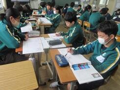 漢字道場4で、送り仮名について学習する前に、積み上げプリントの答え合わせをしていました。