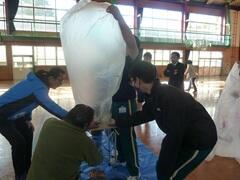 今日の1時間目から8、11組が、高根沢バルーンクラブの皆さんによる熱気球教室を体験しました。最初に自分たちでミニ熱気球を作って飛ばし、その後に本物を見せていただきました。とてもよい経験になったようです。