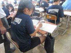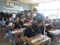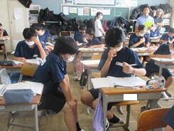 今日の3時間目に授業公開で、1年5組の数学の授業が実施されました。一次方程式を使って解く問題でしたが、丁寧で、生徒同士が考えを交流させる時間が確保されたとてもよい授業でした。